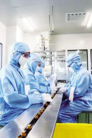 三七從植株到產(chǎn)品,要經(jīng)歷層層嚴格把關(guān),不同產(chǎn)品需要采用不同的現(xiàn)代化技術(shù)。例如云南白藥集團生產(chǎn)的現(xiàn)代中藥制劑氣血康口服液,濃縮提取后的液體被送入自動灌裝生產(chǎn)線,先進的灌裝機械不僅能實現(xiàn)精確計量,還能保證無菌操作。生產(chǎn)線上,自動貼標(biāo)、噴碼、包裝等流程一氣呵成,不僅提高了生產(chǎn)效率,也讓產(chǎn)品信息可追溯。