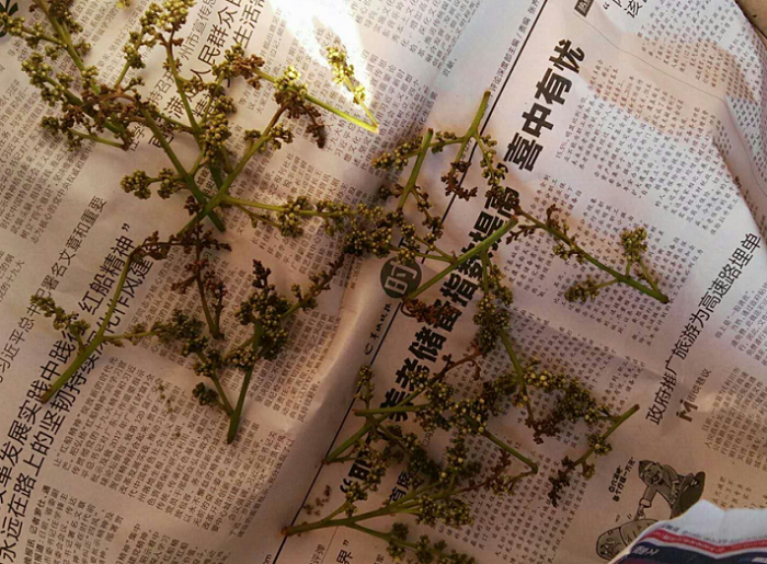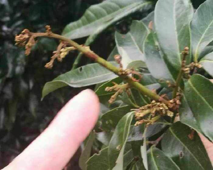在荔枝園尋找荔枝被害花穗