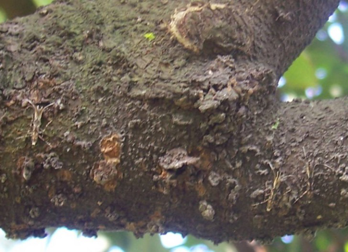 二、成蟲羽化高峰期進(jìn)行施藥,噴殺荔枝蒂蛀蟲成蟲。推薦使用藥劑為:具有強(qiáng)觸殺作用的擬除蟲菊酯,或5%啶蟲脒乳油,或荔豐保,使用所推薦劑量進(jìn)行內(nèi)膛噴霧防治(見(jiàn)下圖)。
