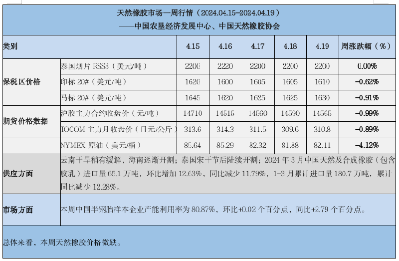 天然橡膠、大豆、玉米市場(chǎng)一周行情(2024.04.15-04.19)