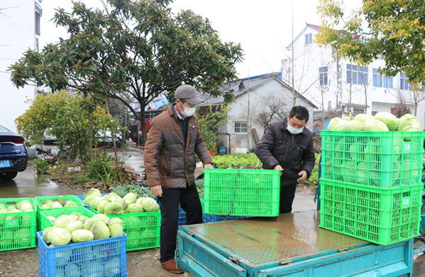 2月11日,在安徽農(nóng)墾皖河農(nóng)場(chǎng)三益蔬菜基地,工人們正在加大采摘蔬菜運(yùn)往安慶三義蔬菜市場(chǎng),擴(kuò)大蔬菜供應(yīng)量,當(dāng)好安慶市“西菜園”。