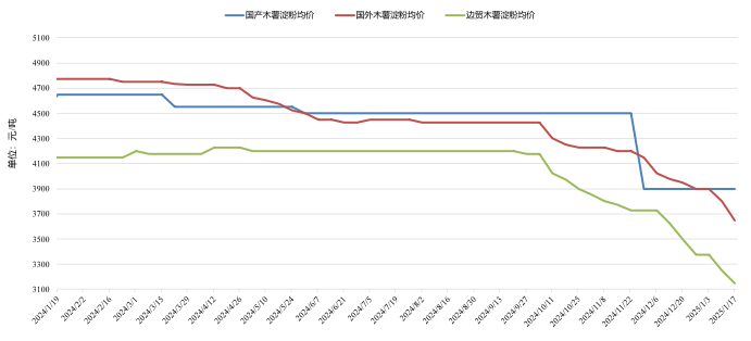 圖3 2024年1月份以來(lái)中國(guó)各類木薯淀粉均價(jià)變化情況