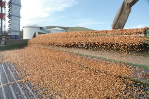 免渡河農(nóng)牧場收獲的小麥正在進行篩選,等待烘干后入倉。 王軒 攝