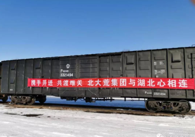 經(jīng)過36小時晝夜奮戰(zhàn),這輛載有1500噸北大荒大米的列車將星夜馳援奔赴湖北,預(yù)計于48小時后抵達(dá)。