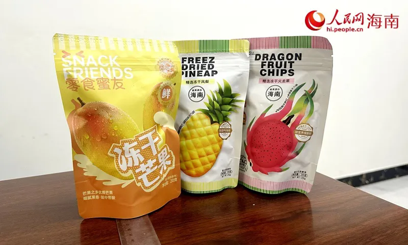 目前,海南洲洲順國際貿易有限公司在昌江主要生產凍干火龍果、凍干芒果、凍干鳳梨、凍干菠蘿蜜4種熱帶水果果干。