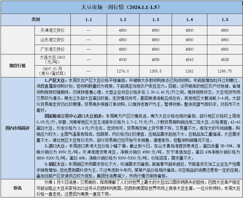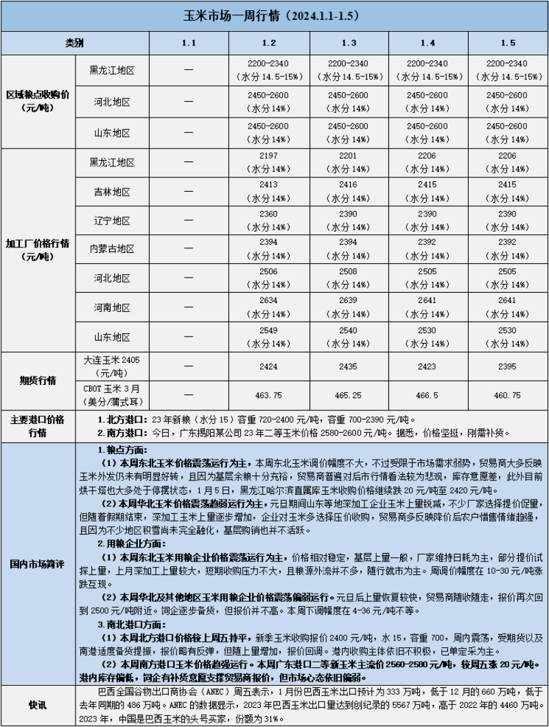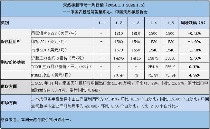 天然橡膠、大豆、玉米市場一周行情(2024.1.1-1.5)
