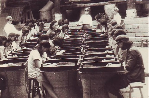 不僅如此,許多為茶場發(fā)展付出一生的工人“獻(xiàn)了青春獻(xiàn)子孫”,把自己的子女也培養(yǎng)成了茶場工人,一生從茶侍茶。大舅的兒子,我的大表哥譚貴生,高中畢業(yè)后就進(jìn)入湄潭茶場工作,當(dāng)過技術(shù)員、車間主任,制茶廠副廠長、代理廠長,也為湄潭茶場的發(fā)展做出過貢獻(xiàn)。他還是當(dāng)時(shí)湄潭茶場名優(yōu)綠茶“湄江茶”的炒制能手,“湄江茶”由中央茶場研制的“湄潭龍井”發(fā)展而來,制作工藝全靠手工,殺青、輝鍋,全程在燒紅的鐵鍋中進(jìn)行,猶如“火中取栗”。大表哥憑借吃苦耐勞的精神,三年就熟練掌握了湄江茶的炒制技術(shù),成為茶場技術(shù)骨干。2013年,湄潭茶場移交給湄潭縣政府管理,大表哥自愿申請下崗,成立湄潭貴云茶業(yè)公司,開始了他的自主創(chuàng)業(yè)之路。