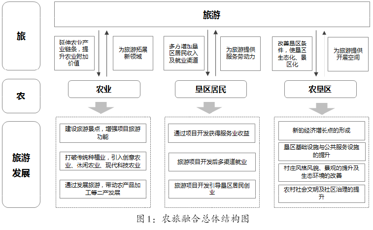 農(nóng)旅融合是農(nóng)業(yè)、墾區(qū)居民、農(nóng)墾區(qū)三者分別與旅游進行深度結(jié)合,是一種新型的鄉(xiāng)村產(chǎn)業(yè)形態(tài)和消費形態(tài)。在充分發(fā)揮農(nóng)業(yè)生產(chǎn)功能的前提下,合理開發(fā)墾區(qū)生態(tài)資源、土地資源、勞動力資源等生產(chǎn)要素,開發(fā)休閑農(nóng)業(yè)、鄉(xiāng)村旅游、農(nóng)旅地產(chǎn)、康體療養(yǎng)等核心配套項目,使農(nóng)墾資源與旅游產(chǎn)業(yè)互相促進,相輔相成,共同加快農(nóng)墾供給側(cè)結(jié)構(gòu)性改革,繁榮墾區(qū)經(jīng)濟。詳見圖1。